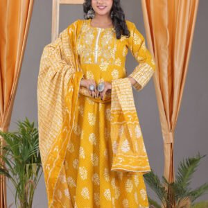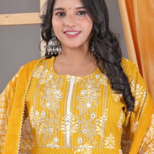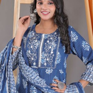 Unveil the beauty of nature with our resplendent flower-petal print kurta set! Crafted from luxurious high-quality rayon, this stunning ensemble embodies elegance and poise. The delicate flower-petal print dances across the fabric, while the round neck design is beautifully accentuated with intricate front neck work. Exquisite lace embellishments add a touch of refinement, framing the border with delicate charm. The matching dupatta completes the look, creating a breathtakingly beautiful silhouette. Perfect for special occasions or everyday sophistication, this flower-petal print kurta set is a masterpiece of craftsmanship and design. Its ethereal beauty will leave you enchanted and mesmerized.