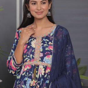 Indulge in the timeless elegance of our Rayon Floral Print Anarkali Suit, designed to add a touch of grace and tradition to your wardrobe. Perfect for weddings, festivals, and formal gatherings, this suit features intricate lace work on the neck and front, complementing the vibrant floral patterns that adorn the fabric. Crafted from soft, breathable rayon, this suit promises both comfort and style. High-quality rayon fabric, known for its softness and durability, ensuring long-lasting wear and ease of maintenance. A beautifully flared Anarkali silhouette with a rich floral print spread throughout the suit. The lace detailing on the neck and front adds a sophisticated touch, making it a standout piece.